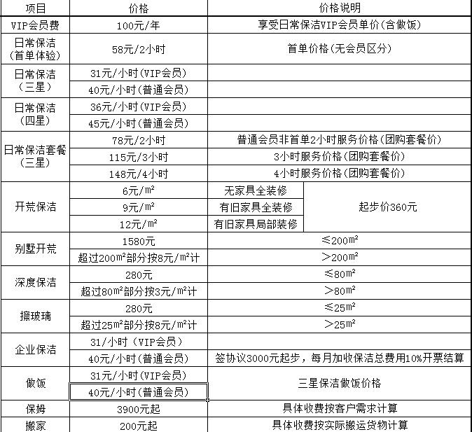 苏州家政公司收费标准